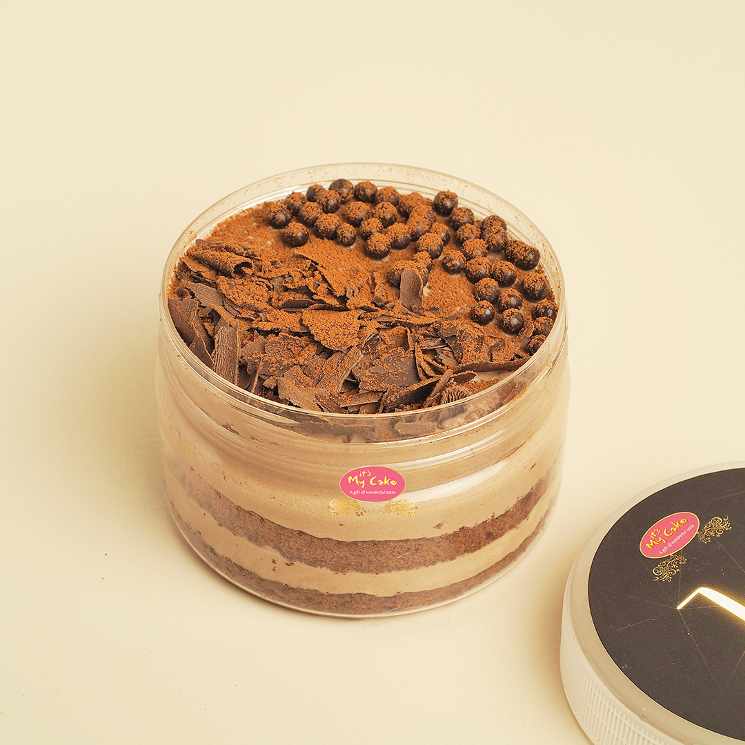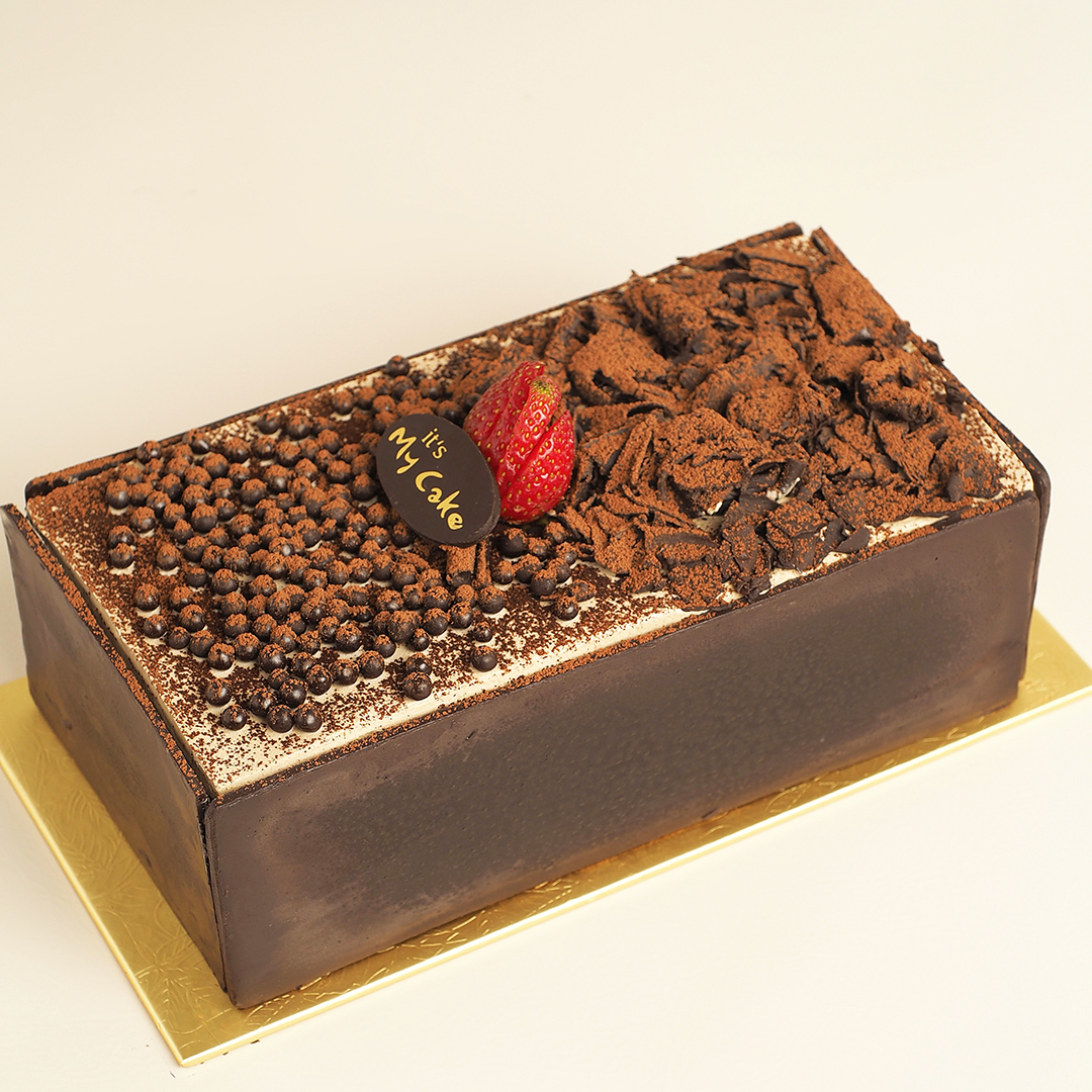 Chocolate sponge cake, our special chocolate mousse in each layer, decorated with dark chocolate compound, topped with shaved chocolate, chocolate crispy balls and sprinkled with cocoa powder. Stored in the freezer, please serve cold for a better taste.